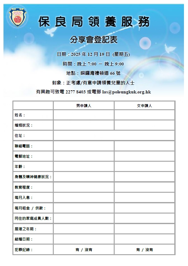 有興趣可致電 2277 8403 或電郵 las@poleungkuk.org.hk與本服務職員聯絡